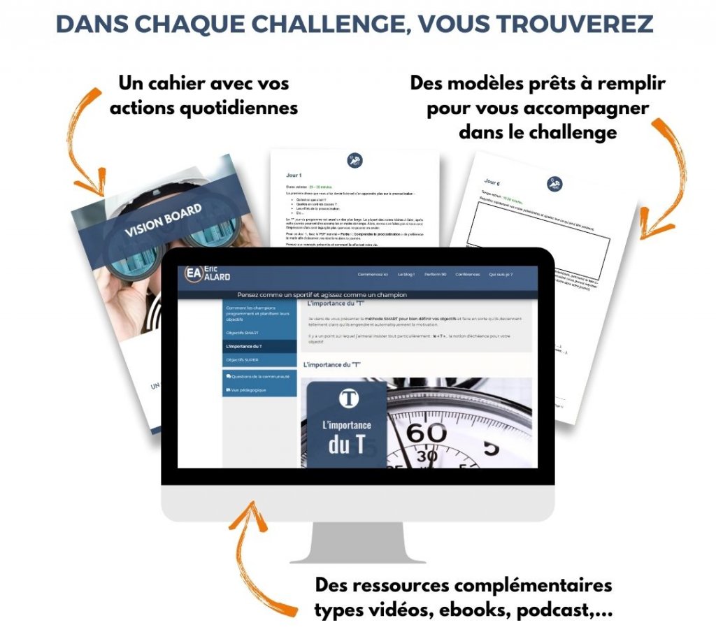 - D'un groupe Facebook ou vous pourrez échanger quotidiennement et progresser avec d'autres futurs CHALLENGEURS !